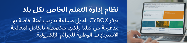 هل يمكنني الوصول إلى CYBOX على الأجهزة المحمولة؟نعم. CYBOX متاح بالكامل على أجهزة الكمبيوتر والأجهزة اللوحية والهواتف الذكية، مما يتيح للمستخدمين المشاركة في التدريب والوصول إلى الموارد في أي وقت ومن أي مكان. علاوة على ذلك، سيتوفر قريبًا تطبيق مجاني للهواتف المحمولة في متاجر التطبيقات.